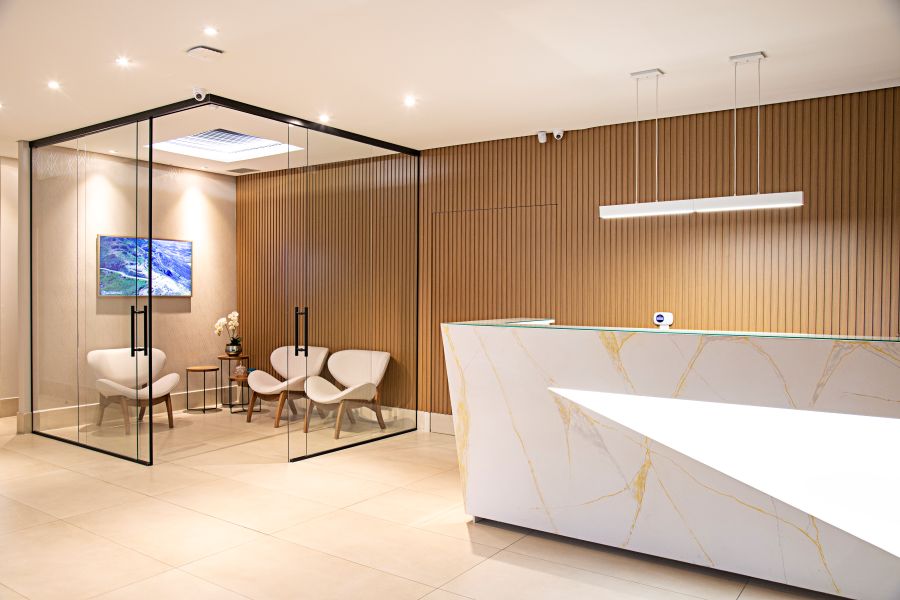 Criamos ambientes corporativos que potencializam a produtividade, promovem a integração entre equipes e elevam o padrão estético do espaço de trabalho. Do planejamento de grandes lajes empresariais a escritórios menores, projetamos espaços otimizados que refletem a identidade da empresa e oferecem as condições ideais para o crescimento dos negócios.