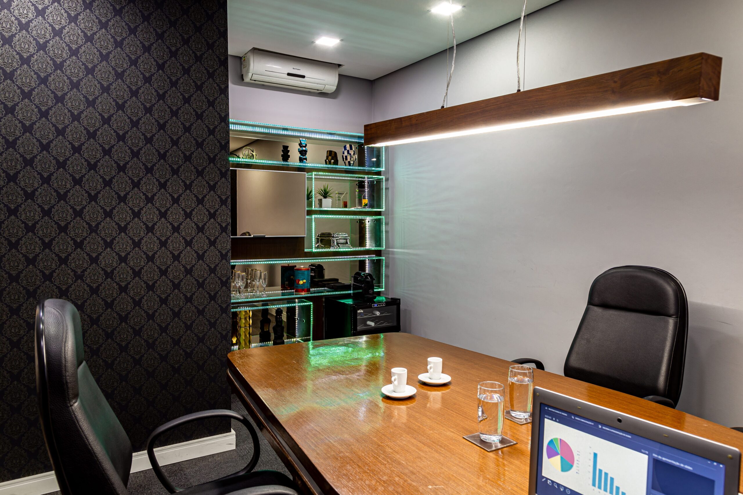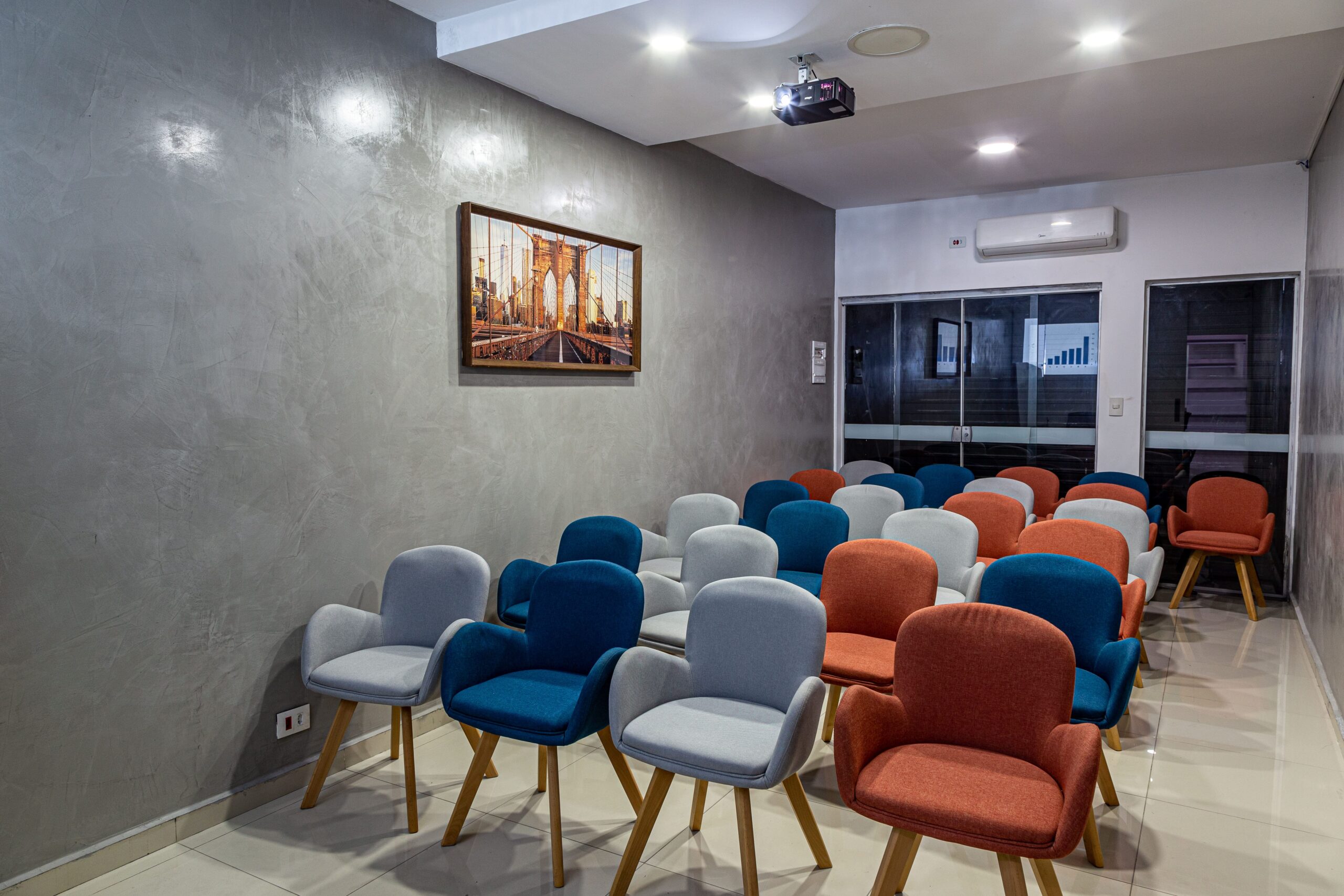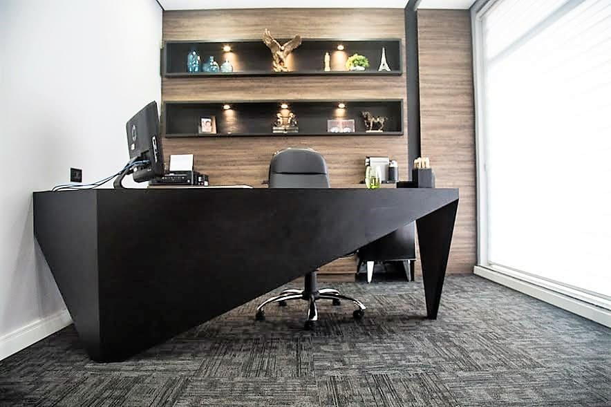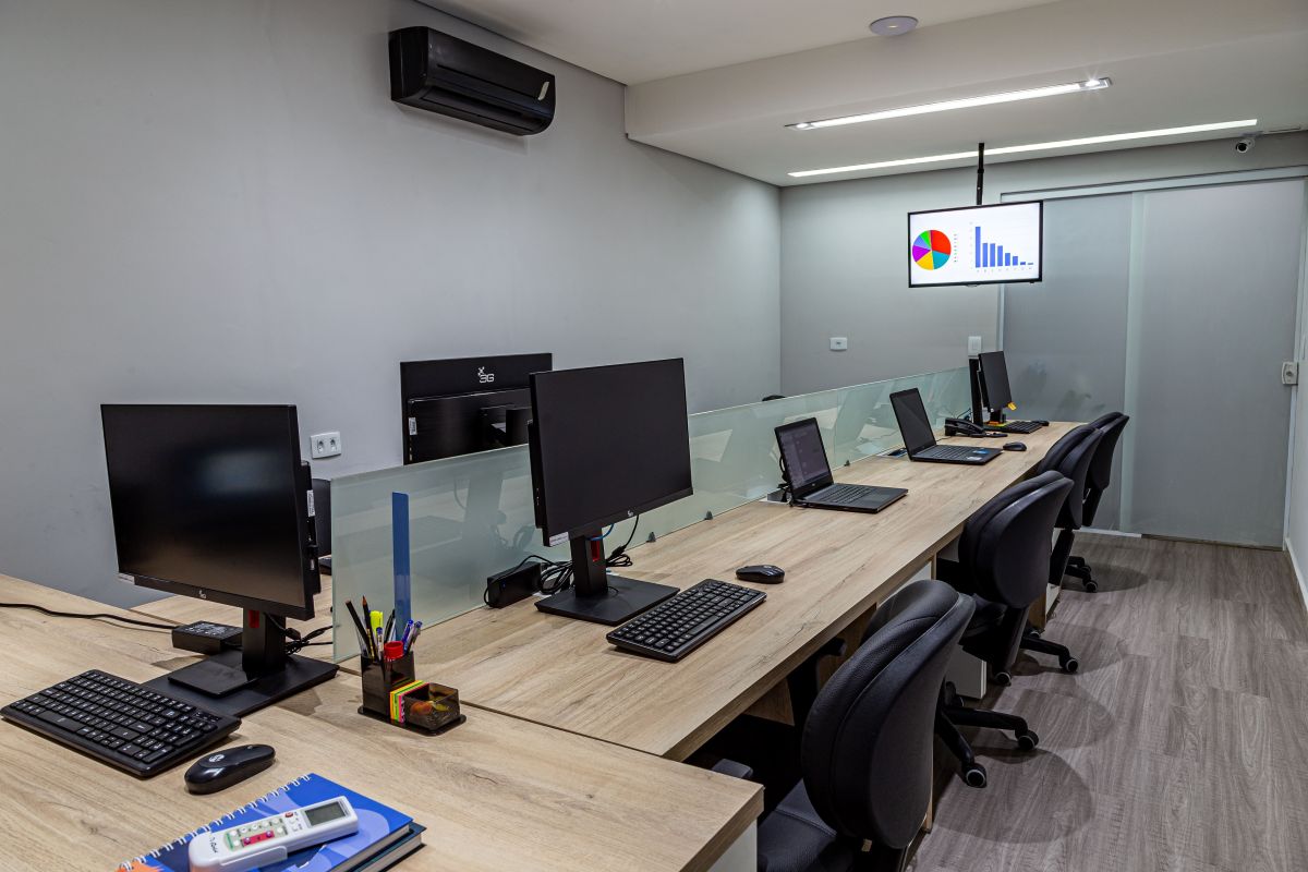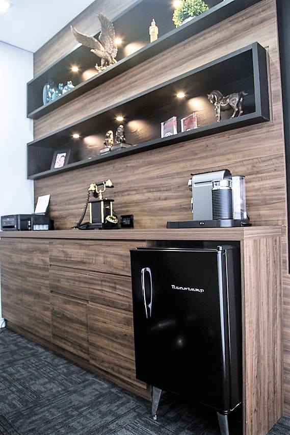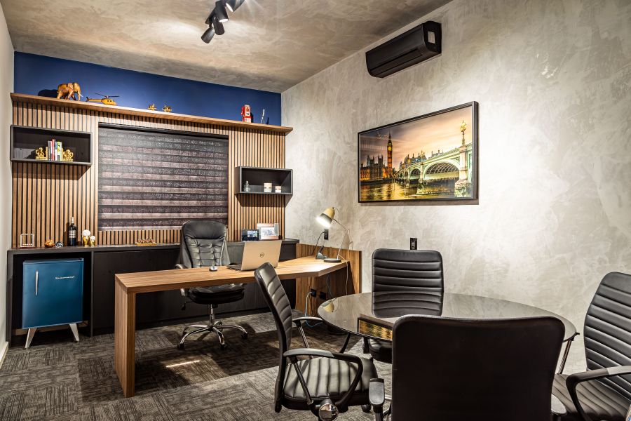 Nosso projeto nasceu a partir dos principais valores da empresa: confiabilidade e flexibilidade. Resgatamos esses conceitos e os traduzimos na arquitetura por meio de materiais que transmitem solidez, como o cimento aparente e as madeiras robustas, equilibrados com a criatividade dos revestimentos e da iluminação, aplicados de forma original e inteligente.