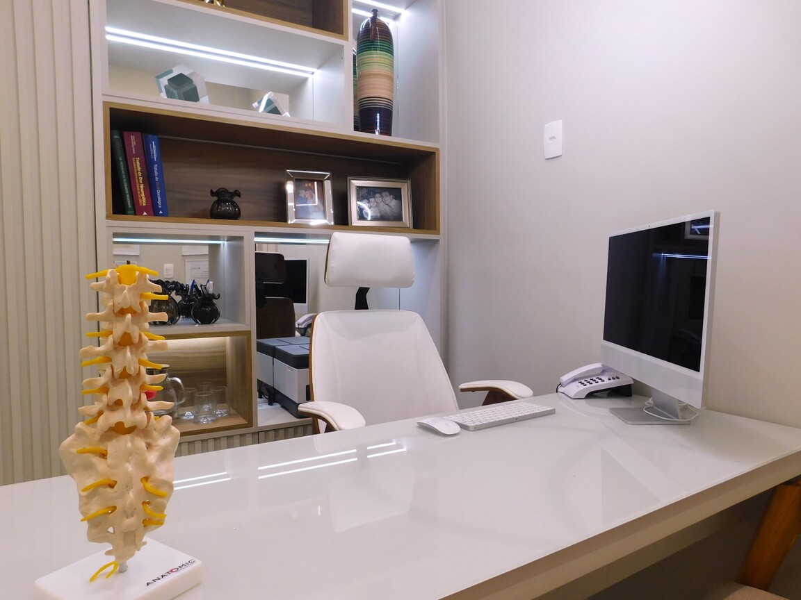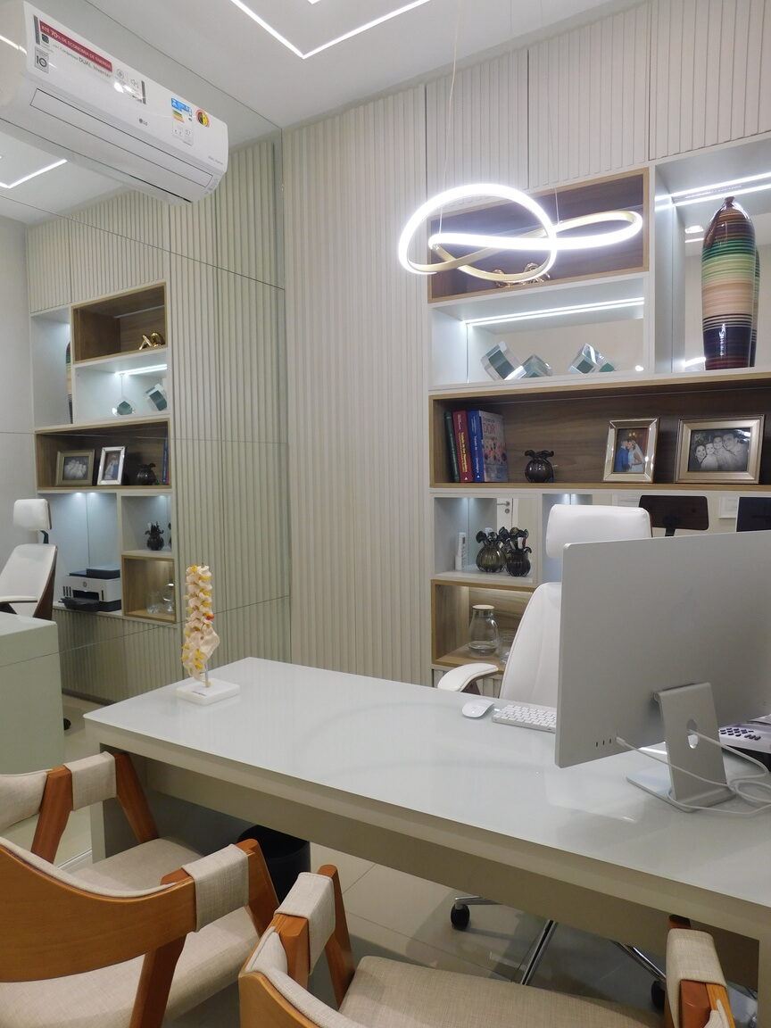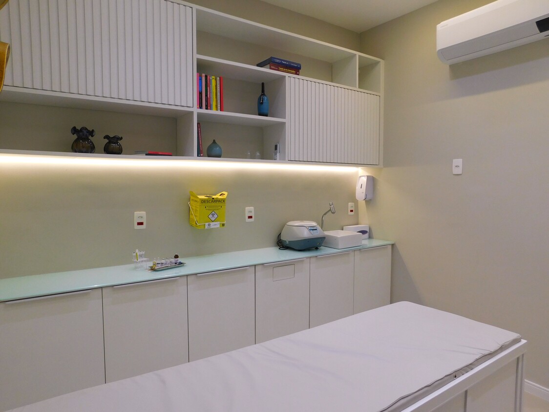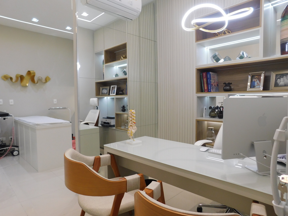 Neste projeto para uma clínica especializada em tratamentos de dor, usamos tons claros e uma iluminação suave para criar uma atmosfera relaxante, que ajuda o paciente a se sentir acolhido antes dos procedimentos.