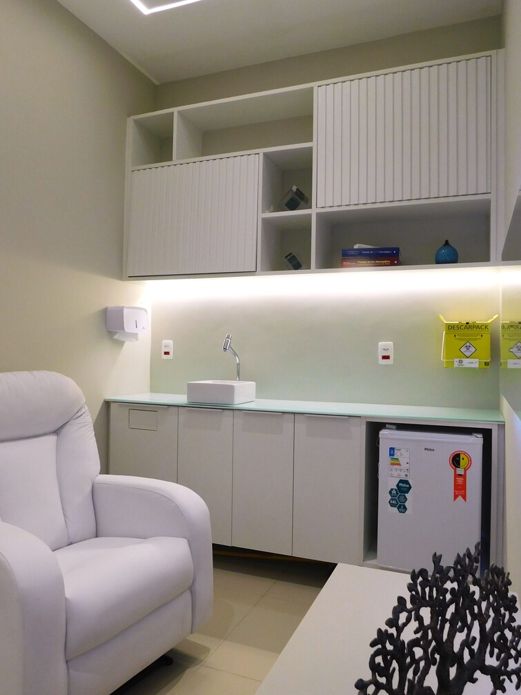 Todo o projeto atende rigorosamente às exigências da vigilância sanitária, mas sem abrir mão da estética e do conforto.
