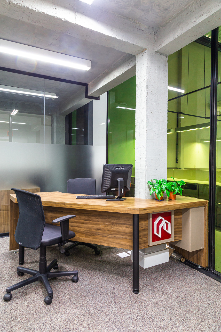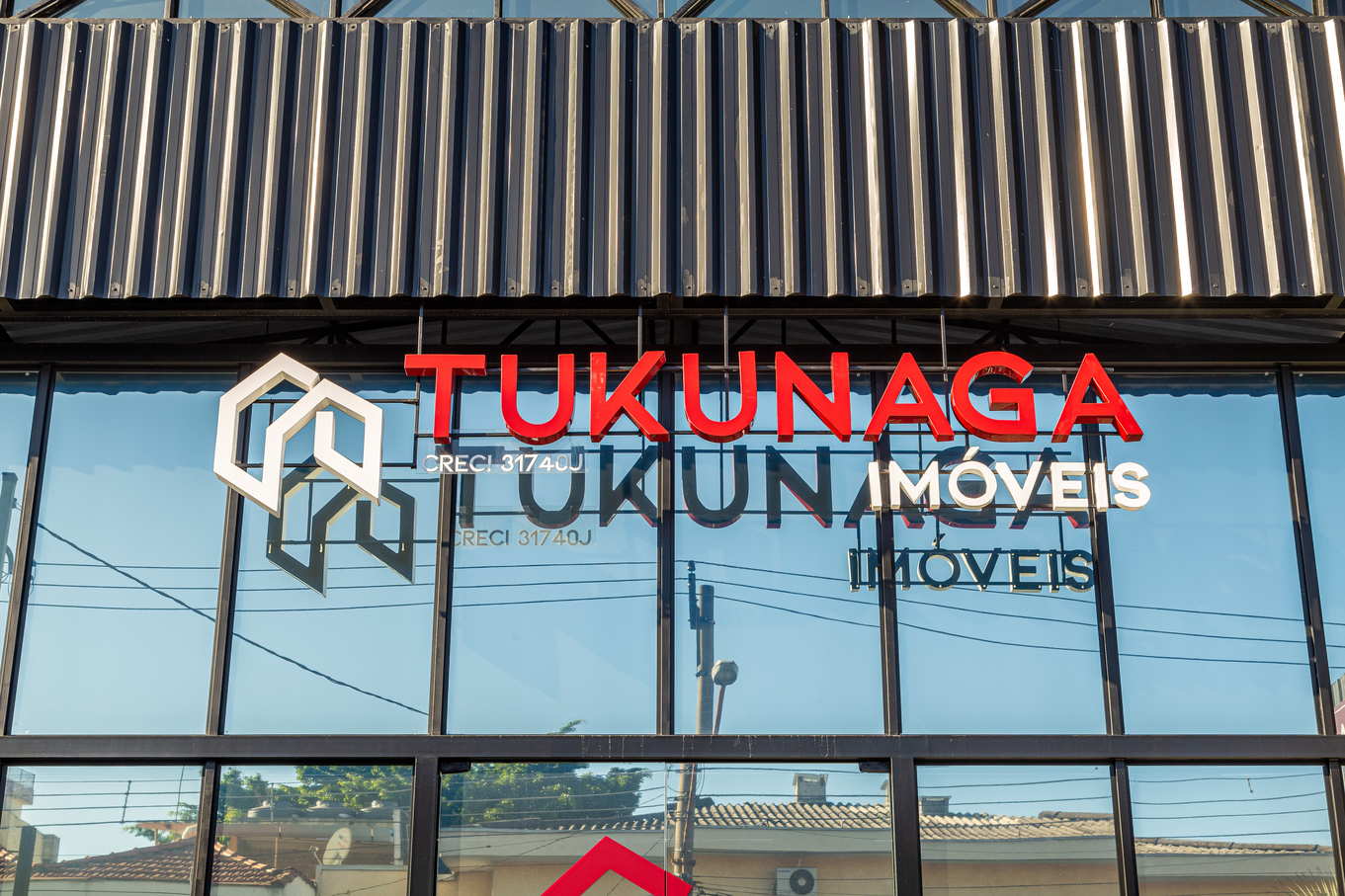 Neste projeto para a sede de uma imobiliária, nosso objetivo foi transformar a leitura de um galpão comum em uma presença corporativa forte e convidativa.